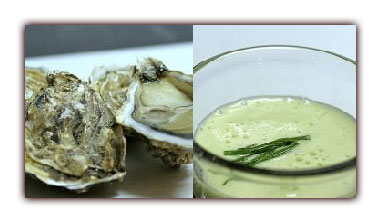 - Soupe mousseuse d’huitres, à la demande de la maîtresse de maison (recette inspirée de la recette de capuccino d’huitres de Mercotte)