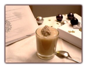 Une verrine ou une entrée pour un Noël en blanc : Soupe de Topinambours à la crème de truffe.