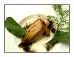 L’ ovni : une endive au gras, au jus de truffe et à la peau de lait qui nous a envoyé dans les cordes.