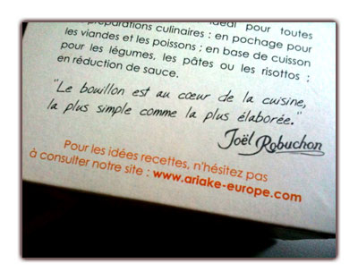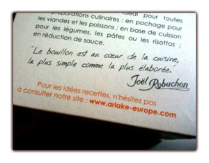Pour les bouillons, moi c’est bio et en poudre. Question saveur c’est pas génialissime … Ariaké, jamais goûté. J’ai vu aussi que Passedat se lance dans les bouillon mais plutôt pour le poisson.