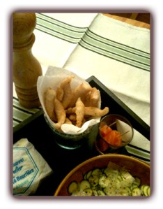 Mais ce n’est pas pour cela qu’il faut se laisser aller non plus. Ce n’est pas parce qu’on dine sur le pouce qu’on lésine sur la qualité – au contraire, avec toutes les bonnes choses qu’on peut manger en ce moment. Voici donc pour vos dinettes d’été improvisées un genre de « finger food » (comme ils disent à la télé) qui n’en reste pas moins authentique : des petits filets de rougets bien croustillants mais qui n’ont perdu ni leur gout ni leur âme – vous pouvez me croire.