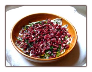 Ainsi est née cette brillantissime association de mon père, au cours de nos repas estivaux en Bretagne, où le Jamon Iberico qui trône toujours dans notre cuisine a fini sa course à coté de  quelques boquerones*. Il a fallu ensuite travailler, noter, reprendre, tester, jusqu’à arriver à cette recette aussi simple que superbe – dont je vous livre aujourd’hui les ficelles (je sens que je vais encore me faire déshériter)!