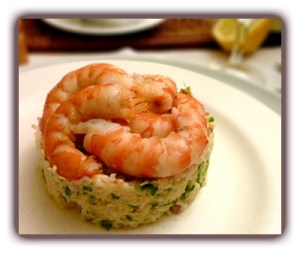 Au moment de servir, disposez les queues de gambas sur la rémoulade.