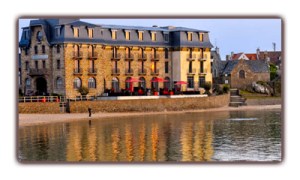 Tout le monde a son petit endroit qu’il trouve le plus beau du monde, moi c’est la plage de St Guirec par marée haute, au soleil couchant. Cette splendeur à la fois magistrale et apaisée me transporte à tous les coups. En plus, cela tombe bien, on y trouve aussi un bel hôtel 1930*, littéralement posé sur l’eau, où nous aimons beaucoup diner et donc associer le plaisir des yeux à celui d’une bonne table.