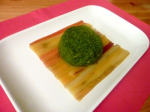 Il s’agit donc d’un OGNI (objet gourmand non identifié), au final très joli, pas compliqué à faire, et qui rend un bel hommage aux blettes dont les textures et le caractère sont complétement respectés par l’exercice. Sous-titre : ça a le gout de blette mon chouchou, si tu n’aimes pas ça, pas la peine de tenter le coup.