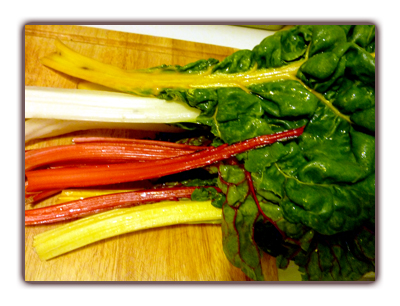 Pour ce joli tableau abstrait, j’ai utilise des blettes multicolores que j’ai eu la chance de trouver dans mon panier de légumes de Monsieur Thiebaut, mais bien entendu le résultat sera tout de même très joli avec la version classique verte et blanche.
