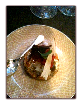 Baja California et coriandre mexicaine décoiffante. Moi qui n’aime pas les couteaux j’en suis restée sur le derrière. Accompagné d’un subtil riesling de Moselle le tout était créatif, nouveau, délicieux.