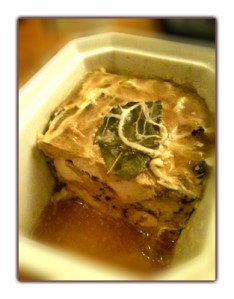 Alors quand mon gastronome et oenophile ami Aldo m’a dit qu’il voulait apprendre à faire les terrines, je n’ai pas laissé passer cette occasion de diffuser ma science et de permettre au monde de profiter de l’étendue de mon immense savoir. Et me voila donc, les mains dans la pintade, à pérorer sur l’équilibre entre le maigre et le gras et l’importance de l’assaisonnement – comme si je savais ça depuis ma naissance alors que j’ai tout pompé le mois dernier dans l’excellent Livre des Terrines et des Pâtés, dont au passage je vous recommande chaleureusement la poétique lecture.