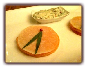 Après une friture japonaise pour un repas de Noël original, enchaînons très chers amis sur une petite entrée chic et minceur, toute en fraîcheur et en finesse, et qui vous permettra de faire découvrir le chou rave à votre assistance ébahie.