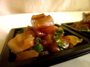10 réflexions au sujet de « Bouchées de tartare de daurade et huitres à la coriandre et maquereau caramélisé. »