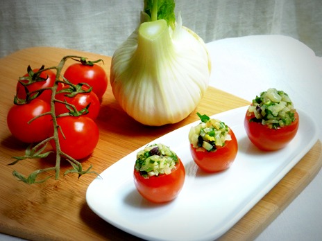 Tomates cerises farcies au fenouil et citron confit de Yannick Alleno.
