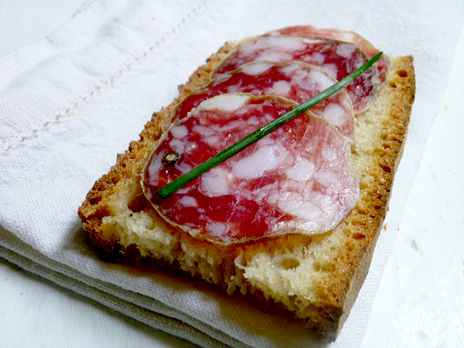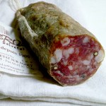 Vénéré dans notre famille depuis trois générations, surnommé chez nous le Saucisson de St Pons du nom du village où mon grand père allait l’acheter, le saucisson de la maison Cabrol représente la plus haute classe qu’un saucisson puisse atteindre. Fin, équilibré, toujours parfaitement affiné, j’aime penser à son sujet que s’il n’y en avait qu’un : ce serait lui. Et même si je suis consciente du fait que mon attachement à ce superbe saucisson est probablement du (en partie) à un passif affectif et familial, en toute objectivité : c’est la grande classe.