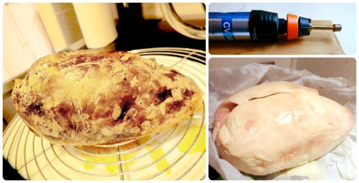 *Le déveinage (mot probablement pas français du tout) est l’étape indispensable et souvent redoutée d’enlever les veines parcourant l’intérieur du foie gras. N’en ayez pas peur, si vous suivez nos conseils cela se passera sans souci, c’est assez simple sur cette recette. Sinon, vous pouvez trouver dans le commerce des foies gras crus déjà déveinés, ils sont un peu plus chers mais ça vaut le coup si vous ne vous sentez pas de le faire vous même.