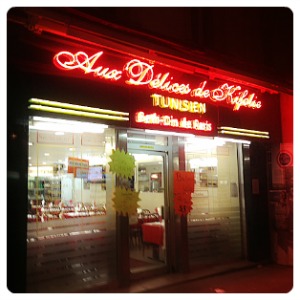 C’est sur le jeune et fringant blog du Menu Belleville, que j’ai découvert l’existence des Délices de Kifolie. Une des ces adresses qui sont comme une percée dans l’espace temps : on pousse la porte et on ne sait plus bien où l’on est ni quand – la seule chose qui est sure, c’est que ça bosse drôlement en cuisine. Ce traiteur juif-tunisien propose (entre autres) des menus à emporter (dits « menus complets »), composés d’un mezzé et d’une viande/poisson absolument énormes, riches en saveurs et parfums d’orient.