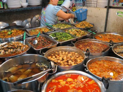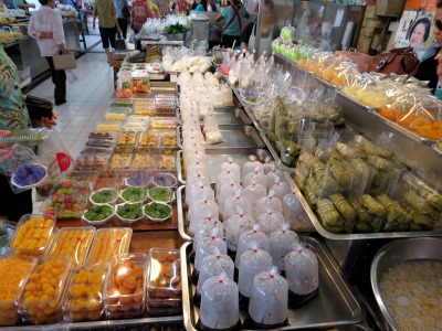 • Soit faire nos courses dans l’un des immenses « Gourmet Hall » des centres commerciaux – mais j’avais peur de n’y trouver que des trucs de farangs*