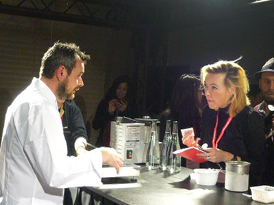 (Mercibisou à Ariane Grumbach pour cette photo de moi en pleine action avec le chef Yannick Tranchant lors du dernier festival Omnivore. Cela flatte complètement mon égo de journaliste blonde to be).