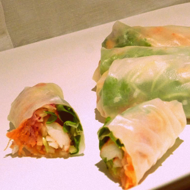 Bonjour les mangeurs de primeurs! Aujourd’hui dans la petite cuisine on fait simple, on fait ensoleillé, on fait parfumé, on fait light – bref, je suis sure que vous voyez où je veux en venir : on fait printanier ! Je vous en avais déjà parlé ici, j’adore les rouleaux de printemps, et je me désespère souvent de la médiocrité de ceux que l’on nous sert en général.