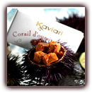Toujours en grave manque de caviar, je poursuis ma quête sans relâche et je croise cette petite boite de corail d’oursin au naturel. C’est vrai que les oursins, ce n’est pas du tout le même trip que le caviar – mais quand c’est bon, c’est tout simplement sublime. La quintessence de l’iode.